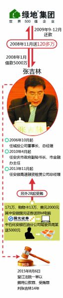 張吉林個人決定從公司拆借5000萬元給綠地,之后收受121萬元賄賂,用于個人買房及炒股票。