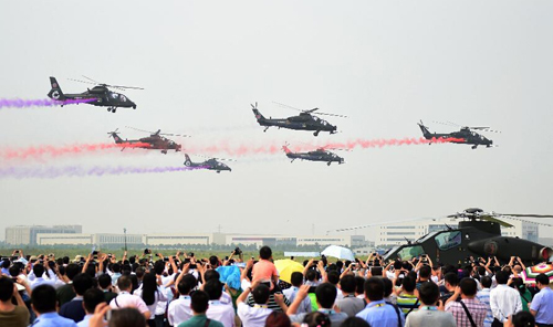 9月9日,国产武装直升机在开幕式上展演。当日,第三届中国天津国际直升机博览会在天津滨海新区的空港经济区正式启幕。本届展会共有来自全球20个国家和地区的366家企业参展,56架直升机真机参展参演。曾出现在阅兵式上的所有直升机机型也悉数亮相直博会。新华社记者张晨霖摄