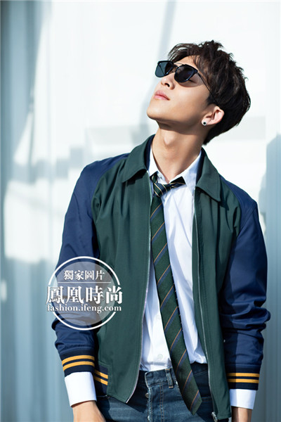 井柏然穿棒球夹克、搭配白衬衫牛仔裤,还有一条随意系起的领带,青春美少年就是这么随便一穿都能迷死人。