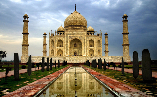 泰姬陵是印度莫卧尔王朝第五代皇帝沙贾汗为其爱妻泰姬玛哈尔修建的陵墓,也是世界闻名的伊斯兰建筑代表作。它始建于1631年,每天动用2万名工匠,历时22年才完成。陵墓的四周砌有长576米、宽293米的红砂石围墙,陵园占地17万平方米,其中间有一个十字形水池,中心为喷泉。由于泰姬陵通体用雪白的大理石砌成,墙壁、门扉、窗棂雕满了精美的花纹,因此早中晚不同时间去看泰姬陵,总能有一番别样的感受。