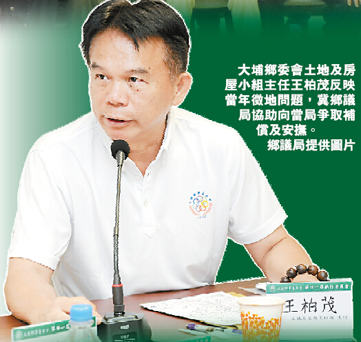 8月18日,鄉議局主席劉業強率領局方眾議員、顧問落鄉探訪大埔鄉、粉嶺兩個鄉事委員會,聆聽村民代表意見。大埔鄉委會土地及房屋小組主任王柏茂在會上指出,上世紀80年代中期,香港獲大亞灣核電廠供應電能,除了30萬伏特的高壓電纜跨越新界大埔、屯門地區外,同時,還要在新界架設若干電纜鐵塔,大埔元嶺、九龍坑等3村更是首當其衝受到影響。當年,上述鄉村村民和鄉委會向當局、營運機構中電反映,電纜從村屋上空穿越,萬壓電輻射對村民身體造成嚴重危害,中電最終採取折衷方法,雖偏離民居,但架設電纜鐵塔數量增加,建電纜鐵塔用地牽涉徵收農地,當年鄉村發展遲緩、農地價值不高,但中電徵收農地每方呎僅補償4至7毫,而同區沙螺洞村雖然地處八仙嶺山腳下偏僻鄉村,私營機構徵地價每方呎20元左右。