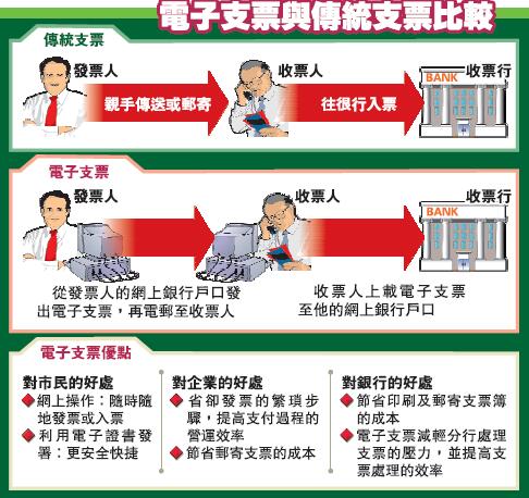 而對銀行來說,電子支票可節省印刷及郵寄支票簿的成本,減輕分行處理支票的壓力,並提高支票處理的效率。