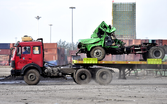 9月11日,一辆货车从核心区现场转运受损的车辆。