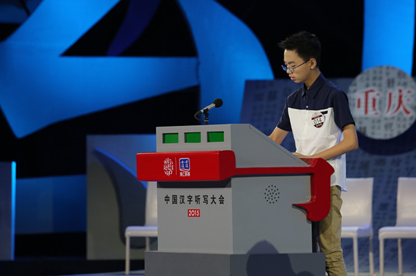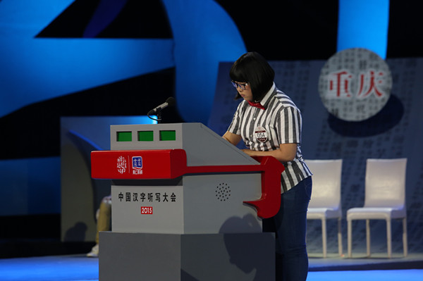 谭湘雨连胜两轮,第二轮写对“尪弊”,击败对手,成为重庆队唯一晋级的选手