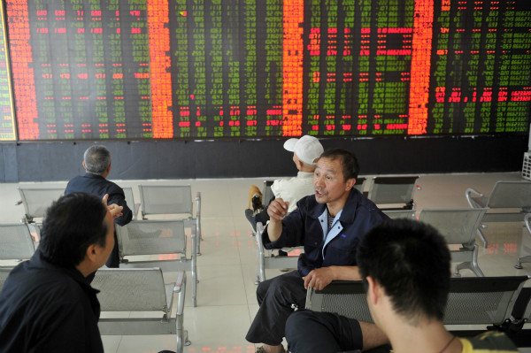 9月15日,山西太原一证券营业部,股民相互谈论股市未来走势。新华社