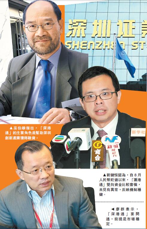 對於內地經濟放緩是否會影響「深港通」投資者的信心,巫伯雄表示,投資「深港通」基本以機構投資者為主導,他們具備專業知識,有能力考量投資的風險。只要內地經濟穩企,在經濟基礎明朗化,內地企業資本透明化之時,香港繼續受惠成為外資流入內地的跳板。