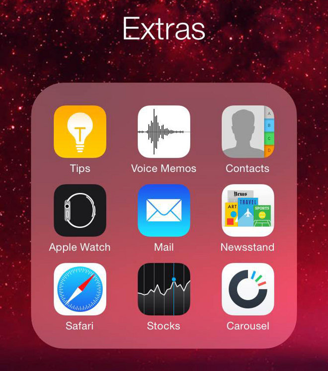 iOS已經逐漸積累了大量默認應用。地圖、天氣、Safari等應用得到了廣泛使用,但股票、報攤(Newsstand)等應用的用處并不是很大,并占據存儲空間和主屏空間。蘋果現在通過將額外應用放到一個文件夾的方式解決主屏空間占用問題。