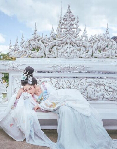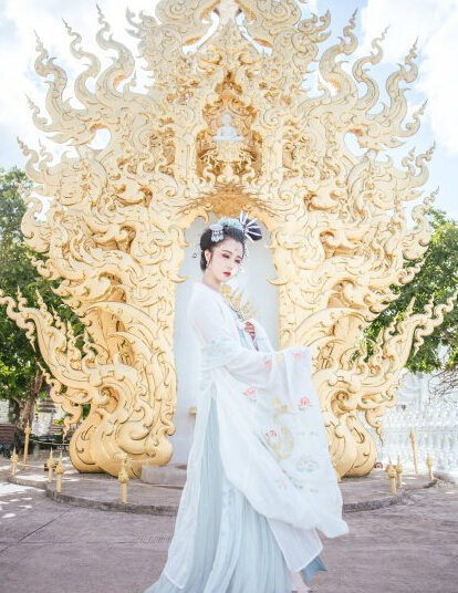 日前,一组中国女孩在清莱白庙拍摄的汉服写真红遍了泰国。