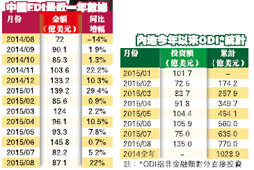 此外,沈丹陽表示,內地8月份對外直接投資(ODI)135億美元,按年增長7%。其中,股權和債務工具投資121億美元,佔比89.6%,增長8.8%;收益再投資14億美元,佔比10.4%,縮減6.7%。1至8月份,內地對外直接投資達4734.3億元(約770億美元),同比增18.2%。