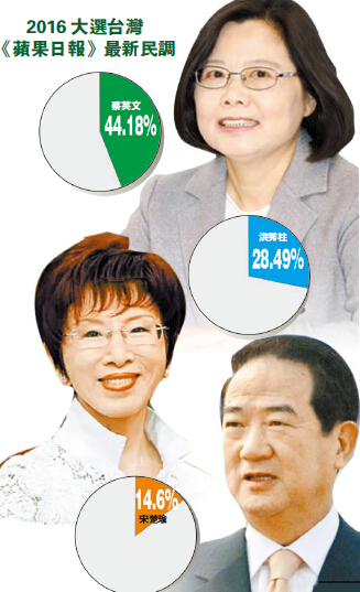 【香港商報網訊】台灣明年1月16日將舉行「大選」投票,「中央選舉委員會」昨日發布選舉公告,公布選務日期等相關細節。據統計,這次選舉有投票權人數約為1881萬人,第一次擁有投票權的首投族,則超過129萬人。最新出爐的台灣媒體民調顯示,藍綠橘三政黨的「大選」參選人中台灣民進黨主席蔡英文遙遙領先,中國國民黨參選人洪秀柱暫居第二,親民黨主席宋楚瑜第三。有美國智庫學者認為,蔡英文勝選台海兩岸關系難料。
