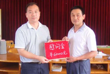 彭仁学(左)参加当地的一个捐赠活动。资料照