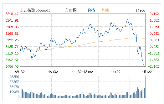 截至收盤,滬指跌2.10%報3086.06點,成交3374億元;深成指跌1.52%報9739.89點,成交3607億元。