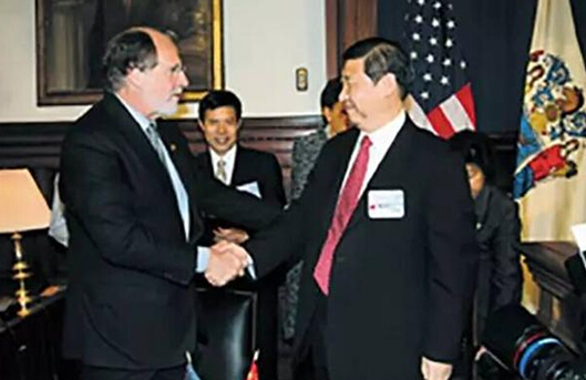 2006年5月,时任浙江省委书记习近平在新泽西州首府特伦顿拜会州长克辛。