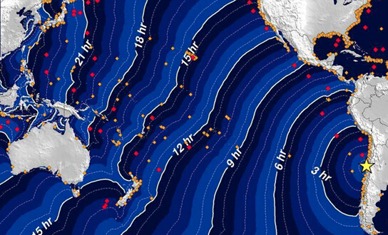 太平洋海嘯預警中心向多個地區發出海嘯提示,估計海嘯會一直撲向太平洋西部沿地區,包括澳洲和日本等地。