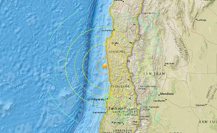 美国地质勘探局网站称,此次地震震级为8.3级,震源深度12.5公里,震中距离圣地亚哥232公里。地质勘探局已经记录了2次余震,震级均超过6级。