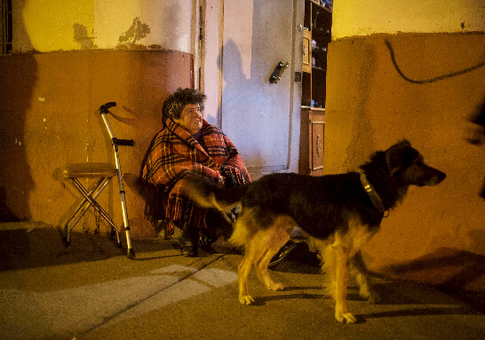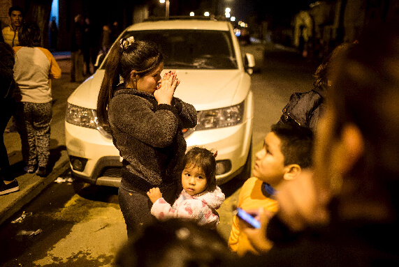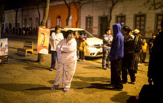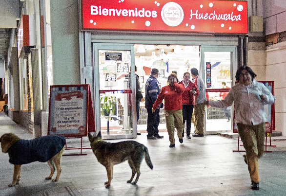9月16日,在智利首都圣地亚哥,人们在地震时从超市内离开。