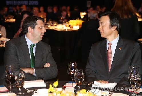 韓國外交部長官尹炳世和美國駐韓國大使李柏特17日出席社團法人“韓美協會”主辦的“韓美友好之夜”活動。