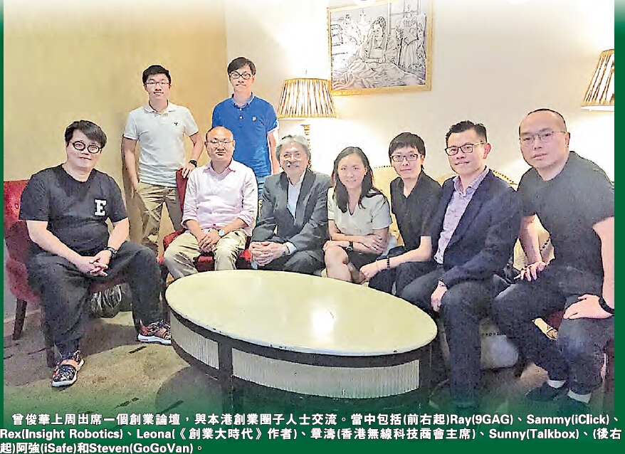 雖然成功創業案實在不少,但曾俊華認為,成功的初創企業不應只立足香港,更應放眼內地以至國際市場。他引述9GAG及Lifehack兩大內容網站來說明:「9GAG及Lifehack的讀者則全無地域限制,與傳統媒體針對個別市場不同,(他們)潛在的廣告市場,自然不能同日而語。」