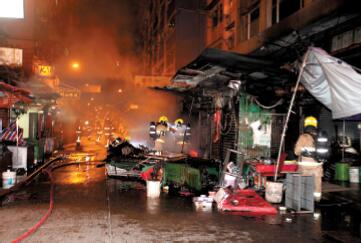 【香港商報网訊】記者馮仁樂報道:旺角現縱火狂徒!昨日凌晨1個半小時內,廣東道先后發生3宗火警,消防疲於奔命灌救,經調查后認為屬故意縱火,已交警方深入調查。火警共焚毀4個排檔,有檔主苦道:「開檔50年都未試過!」警方正追緝狂徒歸案。