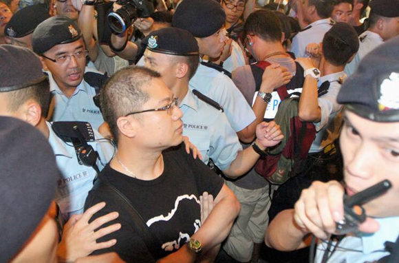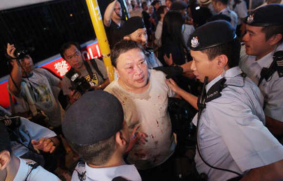 2015年9月21日報道,20日晚,香港鳩嗚團成員在旺角行人專區聚集游行,包圍警署,其間一名身穿白色襯衫男子在現場與人發生沖突。事后涉事的4人被帶走調查。
