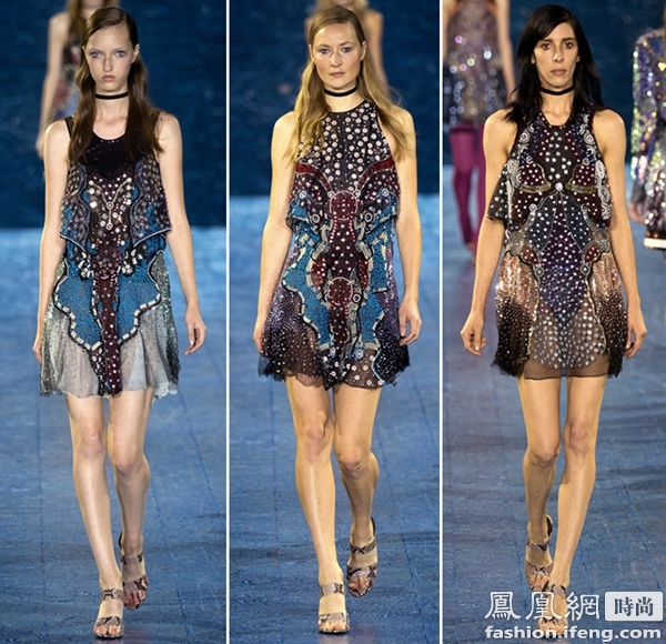 Mary Katrantzou的设计向来都是以主题感极强的印花著称,在本季,当然民族印花贯穿整场秀,你能找寻到浓浓的东方气息。更惊喜的是她不同以往地运用多种主题元素。在秀场上,你可能会感受到Blingbling,因为印花女王用了太多的金线、霓虹亮面在里面,先来看看。