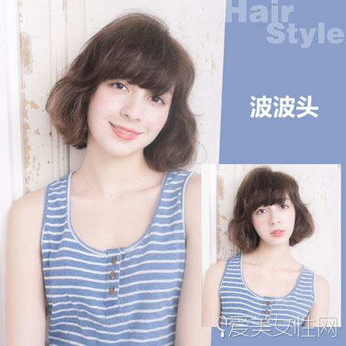 这款侧分波波头,头发的发尾烫得蓬松,微翘。头发长度下巴位置,向内微翘的发尾能显得特别甜美。