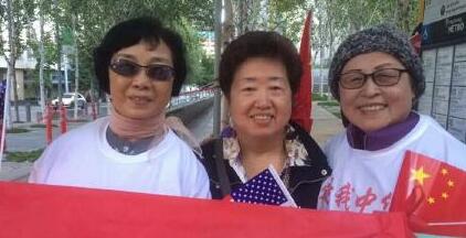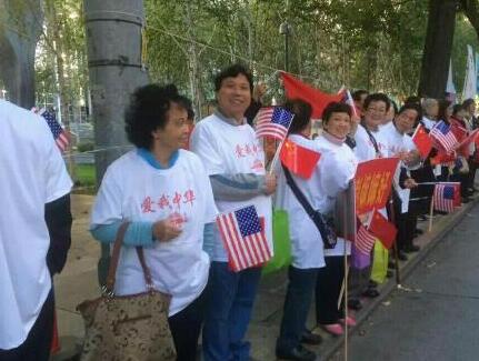 民眾持中美國旗等待