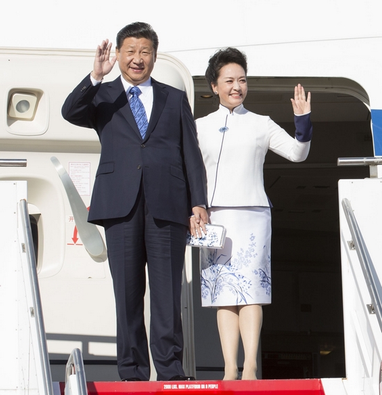 習近平彭麗媛手挽手走下飛機舷梯