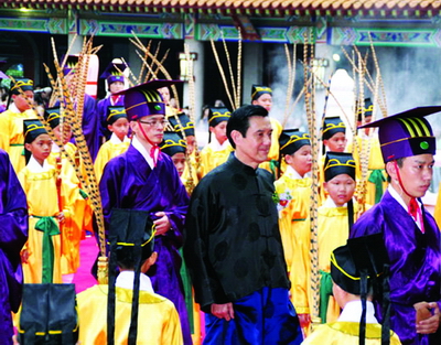 《聯合晚報》22日介紹稱,臺北市祭孔典禮在二戰結束后仍延續日本殖民統治時期的祭典,并擴大舉辦,至今已有80多年歷史。其間祭典儀式多有變革,變化不小,如牲禮部分,改掉過去殺牲的習慣,1997年改用糯米,仿牛、羊、豬制成“素太牢”糕餅,代替真的牛、羊、豬。另外一項重大變革是取消拔智慧毛活動,改發智慧糕。很多民眾因拔不到智慧毛,爭相用正獻官的凈手水洗手,并稱之為“智慧水”,令人莞爾。報道說,近年來臺北市祭孔仍不斷出現新點子,并以此吸引觀光客。去年為了服務來自各地的觀禮民眾,臺北首度增加新移民志工,同時恢復暌違已久的拔智慧毛活動,只是改以2000支毛筆掛在智慧牛身上,讓民眾排隊領取。