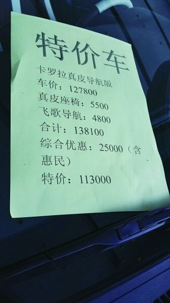 一汽豐田五方橋店推出的卡羅拉增配特價車