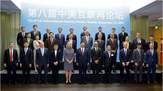 當地時間2015年9月23日,第八屆中美互聯網論壇在美國西雅圖舉行,中美企業家進行一場“重量級的對話”。與會者包括15位美國公司首席執行官和15位中國公司首席執行官。中國國家主席習近平也出席了此次對話會。習近平對這些企業高管表示,中國政府支持基于中國的“國情現實”去合作發展互聯網。他表示,對于所有國家,“安全、穩定、繁榮的”數字行業都是一個重要議題。