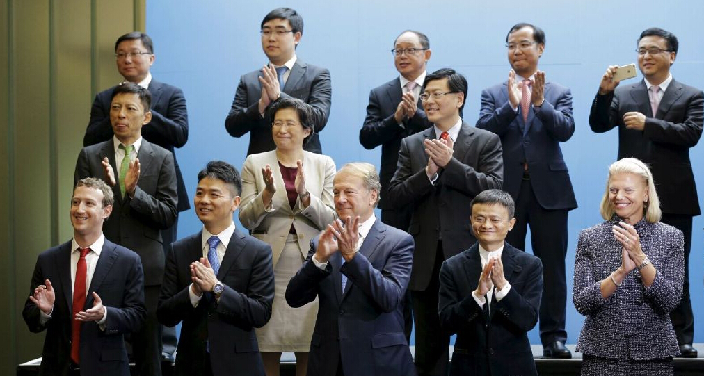 微軟CEO Satya Nadella、英特爾CEO Brian Krzanich、蘋果CEO Tim Cook、高通CEO Steve Mollenkopf、Linkedin 創始人 Reid Hoffman、雅虎創始人楊致遠、AirBnB創始人Brian Chefsky、思科執行主席John Chambers和AMD總裁&CEO Lisa Su。