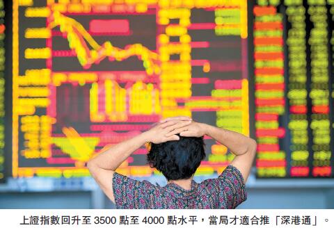 史理生認為,「深港通」一旦啟動,內地金融市場將因而更加開放,有助其實現與內地接軌,并推出人民幣國際化的進程。至於開通時間,他指,應不遲於明年首季度開通,但「若短期內開通的話,將提升海外投資者造空A股的風險」。