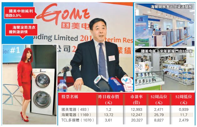 作為內地家電龍頭海爾電器半年賺11億元,按年增長12%,家電銷情理想,其中洗衣機及熱水器收入及盈利均有所上升,且該公司推出高端產品如滾筒洗衣機及高效節能的空氣能熱水器等刺激銷情,抵銷整體白色家電需求下降的影響。