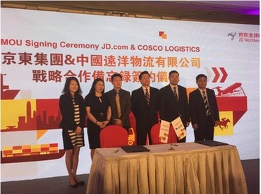 9月24日,京東全球購香港招商會在香港銅鑼灣富豪酒店隆重召開,京東集團CHO&GC隆雨、京東商城消費品事業部總裁馮軼、莎莎首席財務總監及執行董事陸楷博士、中國遠洋物流有限公司總經理孫軍,以及來自母嬰、食品、保健、家居、個護、鐘表等各個領域的香港知名企業、商家代表出席了活動,共同見證了京東全球購首次香港招商會的盛大召開;招商會上,京東與莎莎網、中遠物流達成戰略合作協議。