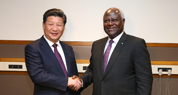 9月27日,国家主席习近平在纽约会见塞拉利昂总统科罗马。新华社