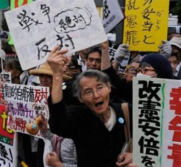 搞經濟不行,但偷梁換柱,讓日本在軍事外交方面有所表現,安倍內閣還是非常“在行”的。選舉中并未提及過的新安保問題,忽然成了安倍內閣的最大政治目標,由于在兩院內占有多數議席,不管民眾是否愿意接受這個結果,安倍內閣順利過關。