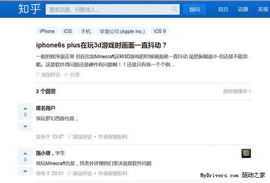 分析師孫昌旭剛剛在微博上表示,iPhone 6S Plus存在3D遊戲閃屏的問題,她朋友的iPhone 6S Plus以及店裏邊抽檢的展示機器上運行大部分3D遊戲(比如Minecraft和FIFA15)的時候,屏幕會出現至少右半豎屏整體抖動/閃動,遊戲體驗非常差。