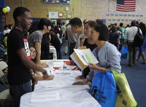 中新網9月28日電 據美國《世界日報》報道,紐約市2015年全市高中博覽會26日在布魯克林科技高中(Brooklyn Technical High School)熱鬧開場,上萬人從五大區蜂擁而至,向各自心儀的學校攤位發起總攻。華裔學生和家長依然對特殊高中情有獨鐘,強調不管考試難度如何“總要一試”,并呼吁更多華裔在特殊高中錄取標準改革的問題上積極發聲,以保障學習環境和學生質量。