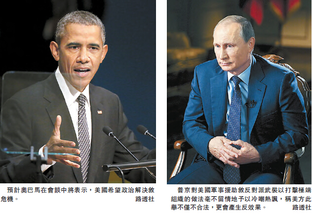 有消息稱,預計奧巴馬在會談中將表示,美國希望政治解決敘危機,而普京則可能強調敘政府軍是敘境內最有能力打擊IS的軍隊。普京27日接受CBS專訪時曾表示:「要想解決敘危機,沒有比建立高效的政府,并幫助這個政府打擊IS更有效的辦法了。」普京還對美國軍事援助敘反對派武裝以打擊極端組織的做法毫不留情地予以冷嘲熱諷,稱美方此舉不僅不合法,更會產生反效果。