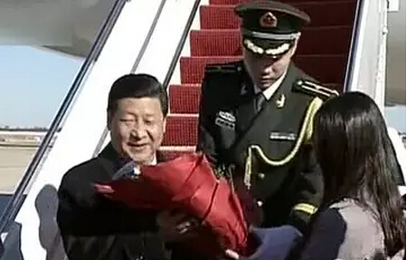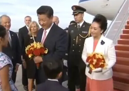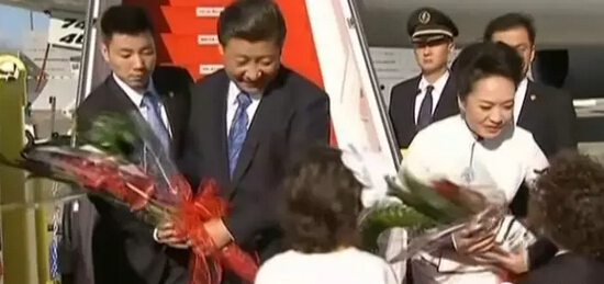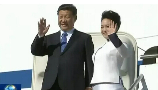 當然,不管是此次美國之行,還是早前的俄羅斯韓國和印度之行等,習近平與彭麗媛出飛機艙門后,或由彭麗媛挽著習近平胳膊,或二人十指相扣走下飛機舷梯的剎那才是攝影記者的沸騰點。
