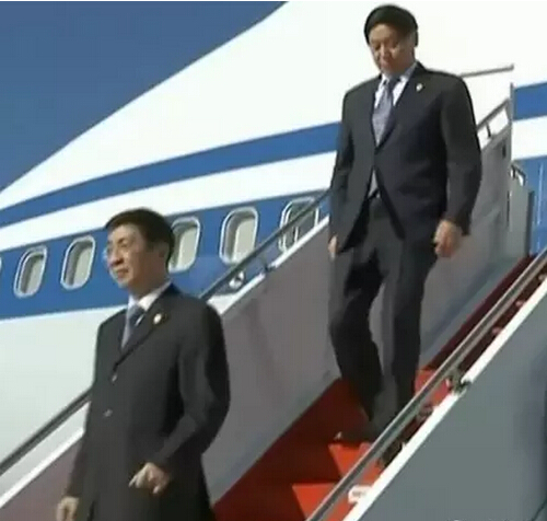在飛機抵達外訪國機場后,一般情況下,習近平或者習近平夫婦下機后,王滬寧栗戰書等眾陪同官員再依次走下飛機舷梯。