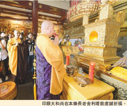 9月20日,湖北佛教界於隨州市大洪山大慈恩寺隆重舉行本煥長老舍利回山永久安奉祈福法會及慶典活動,來自全國高僧大德、湖北省及國家宗教局各級領導、海外嘉賓及四眾弟子等數千人參加了此次佛緣盛事。世界三大語系佛教高僧大德登壇主法,祈願國泰民安、世界和平,共盼本煥長老乘願再來、福澤大千。香港商報記者陳柳燕