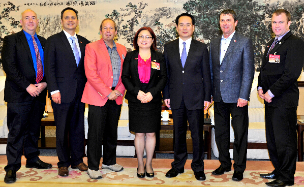 中新社北京9月29日電 (郝爽)中國國務院僑辦副主任譚天星29日在北京會見了以孫曉明為團長的加中投資商會第二屆市長訪華團。
