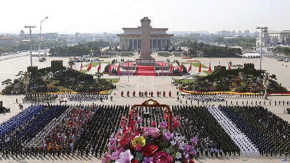 2008年10月1日上午,时任总书记的胡锦涛和吴邦国、温家宝、贾庆林、李长春、习近平、李克强等十七届中央政治局常委等党和国家领导人,出席首都各界向人民英雄纪念碑敬献花篮仪式。