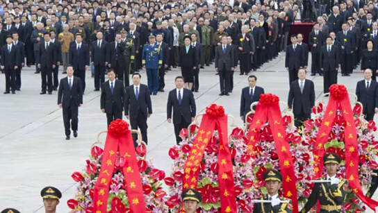 9月30日,习近平出席向人民英雄敬献花篮仪式 。中新社