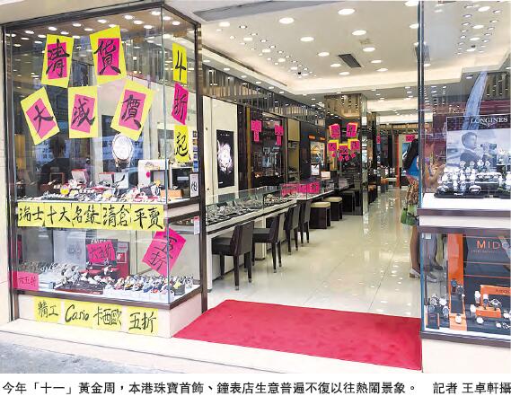 自從2003年「沙士」後推出自由行以來,大量內地客來港購物,尤其是珠寶首飾、鐘表及名貴禮物等奢侈品成為其來港必買的物品。這刺激了本地珠寶鐘表店大量擴張,也刺激遊客區店舖租金不斷上升,銅鑼灣羅素街等處一些小舖大都被昂貴租金逼走或倒閉,取而代之的多是鐘表珠寶名店。於是,內地「十一」長假真正成為香港零售業的黃金周。
