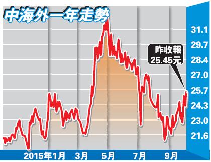 德意志予中海外「買入」評級,高盛將中國海外由「中性」升至「買入」評級,目標價由32.6元調升至37.6元,花旗將中海外列為行業首選。