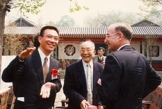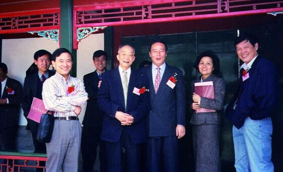 1997年4月25日,杜润生(前排左二)、王岐山(前排左三)等在北大祝贺致福轩修复暨中国经济研究中心迁址。