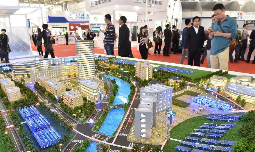 10月13日,參觀者在觀看光能智慧城市沙盤。當日,中國光伏大會暨展覽會在北京中國國際展覽中心(新館)舉行。以“構建光伏與社會協調發展新格局”為主題的此次大會吸引了包括光伏組件、材料及零部件、開發商、技術服務、金融互聯網、太陽能綠色建筑在內的光伏全產業鏈企業前來參展,展覽將持續至本月15日。新華社記者羅曉光攝